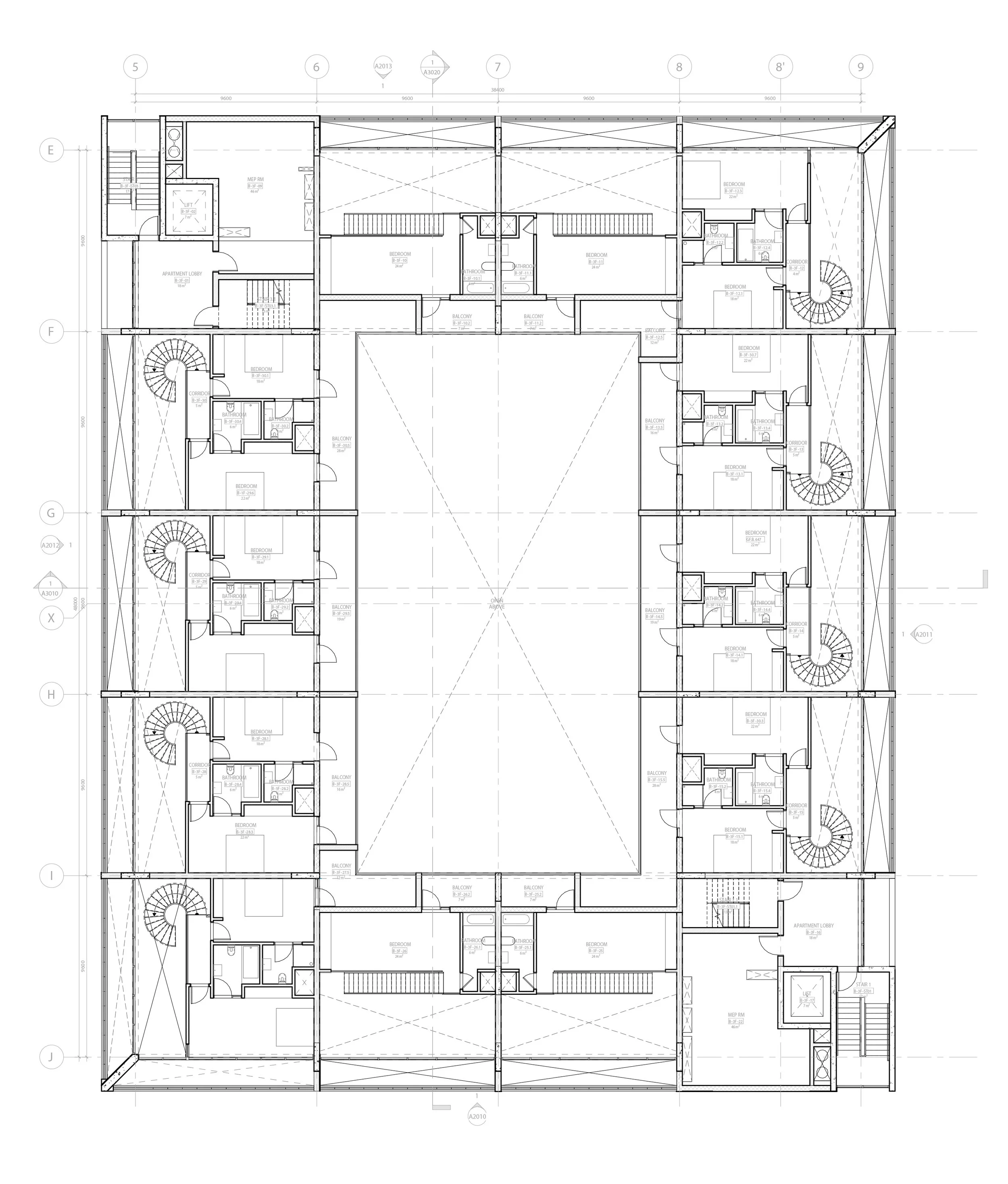 The shading system reflects the diverse color palette of the city creating a playful and hromatically contextual building. All three Artisan Square buildings are organized around a central void. The Art Institute (Building A,), is organized around a large atrium that spans the full height of the building, bringing natural light to the lobby below. The Central building (Building B) is a contemporary reinterpretation of the traditional courtyard house. SAF offices (Building C), is split in two. The two sides are shifted by half a level with a void in the center that allows for a visual connection between the different levels of the building and supports interaction between the various teams.